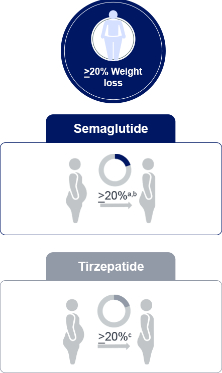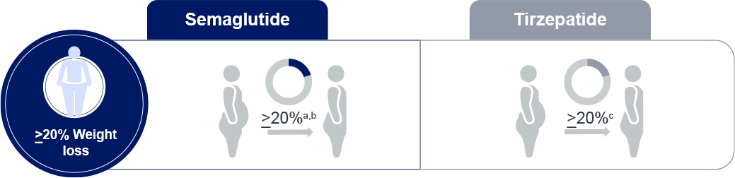 b: Across STEP trials, one-third of those on semaglutide 2.4 mg dose lost at least 20% of their