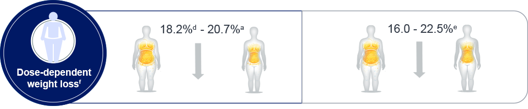 f: Trial product estimand; Weight loss range is quoted by the minimum and maximum maintenance doses from